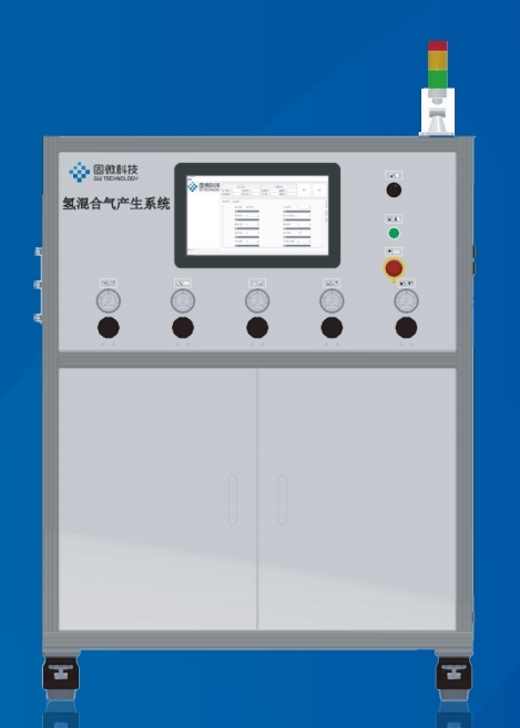 流动法配气设备为氢混合气产生系统,支持多通道配气。设备使用流动法配置一定浓度的氢气,可根据用户需求选择不同模式:氢空模式、 氢氮模式、氢氩模式、标(含量为1%氢气)空模式(与标氮模式用一个模式)。设备带有温湿度和压力监测功能,采用高精度不同量程质量控制流量计保证配气精度。设备操作简单,配有单板电脑记录配气数据,支持表格导出。